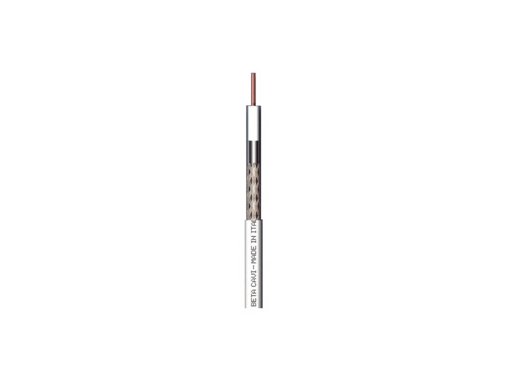 Koaxiální kabel 75Ω Ø7mm, PVC -vnitřní. Stínění: Al 100%/B-lloy 45%, Dielektrikum: PEG, Vnitřní vodič: Cu 1,13mm, Max. útlum (20°C - dB/100m): 12,8 - 450 MHz